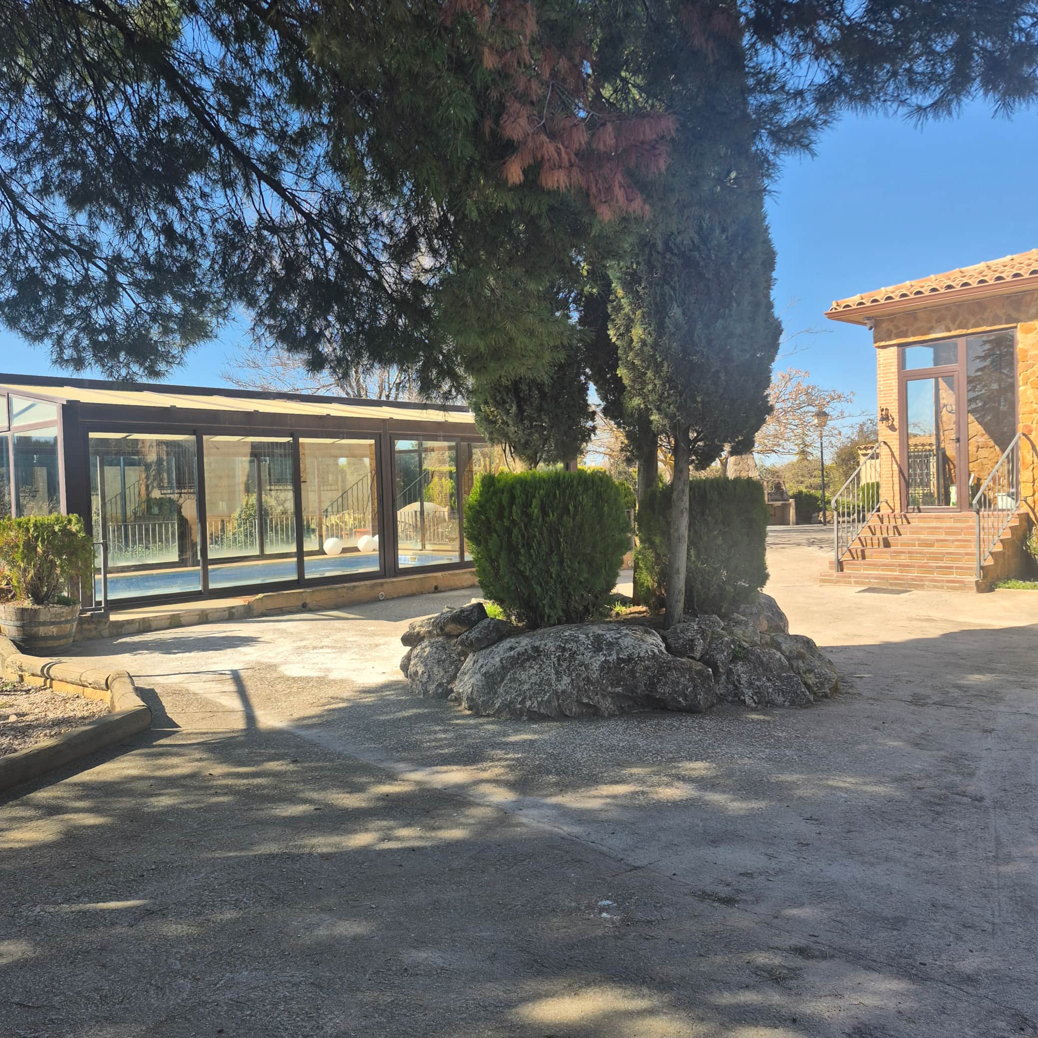 Uno de los grandes tesoros de la finca es su piscina acristalada, diseñada para disfrutarse. En los días cálidos, las cristaleras se abren por completo, dejando que el aire y el aroma del campo entren a raudales, integrando el interior con el exterior de manera natural. En los meses más frescos, en días cálidos se convierte en un oasis resguardado donde nadar, relajarse o simplemente dejarse llevar por la tranquilidad del entorno.